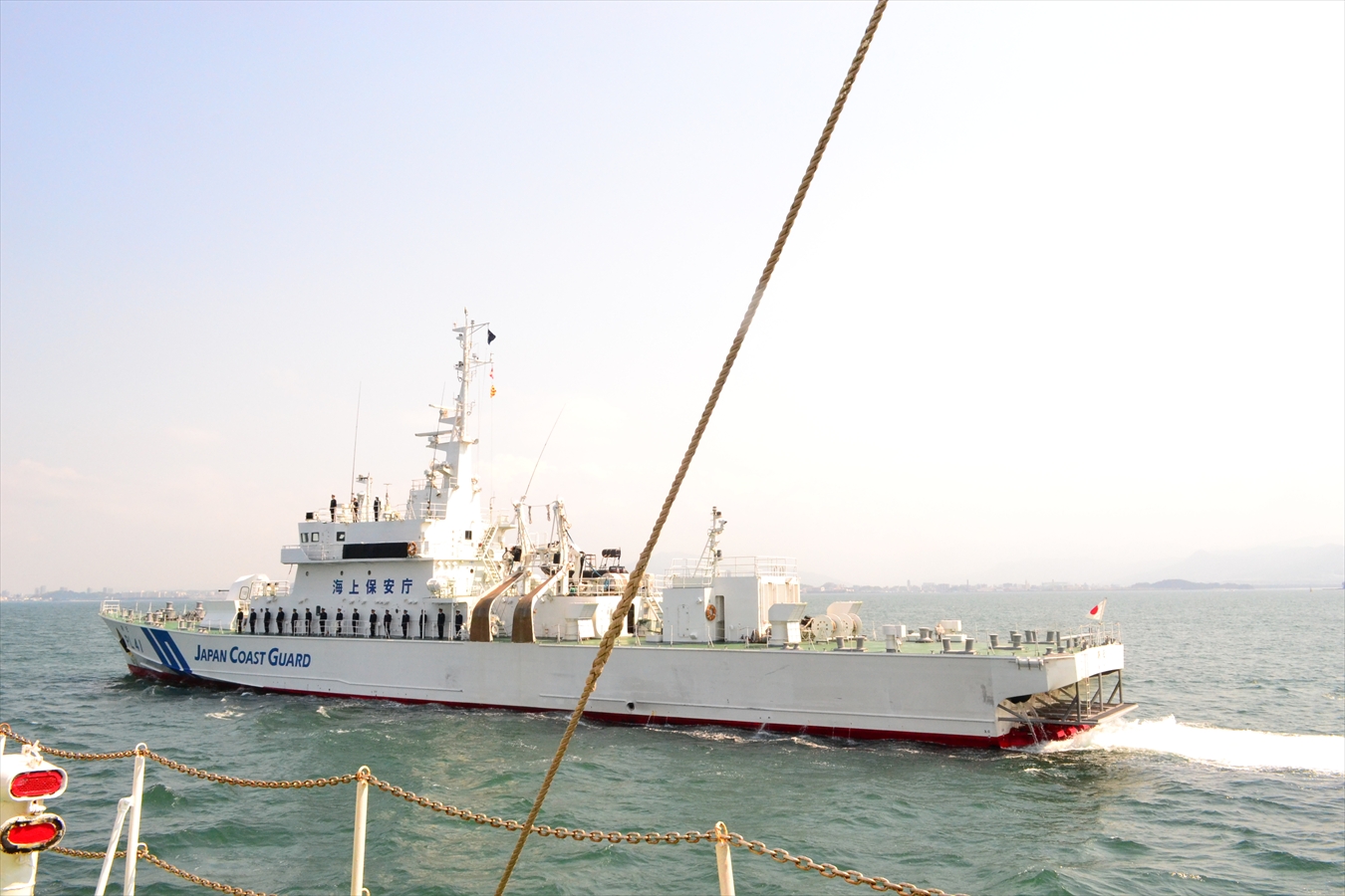 参加者の乗船するちくぜんに敬礼(登舷礼)をしながら通過していくあれです。
