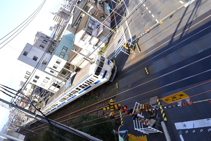 向こうの電車がおもちゃみたいに見えてしまいます。