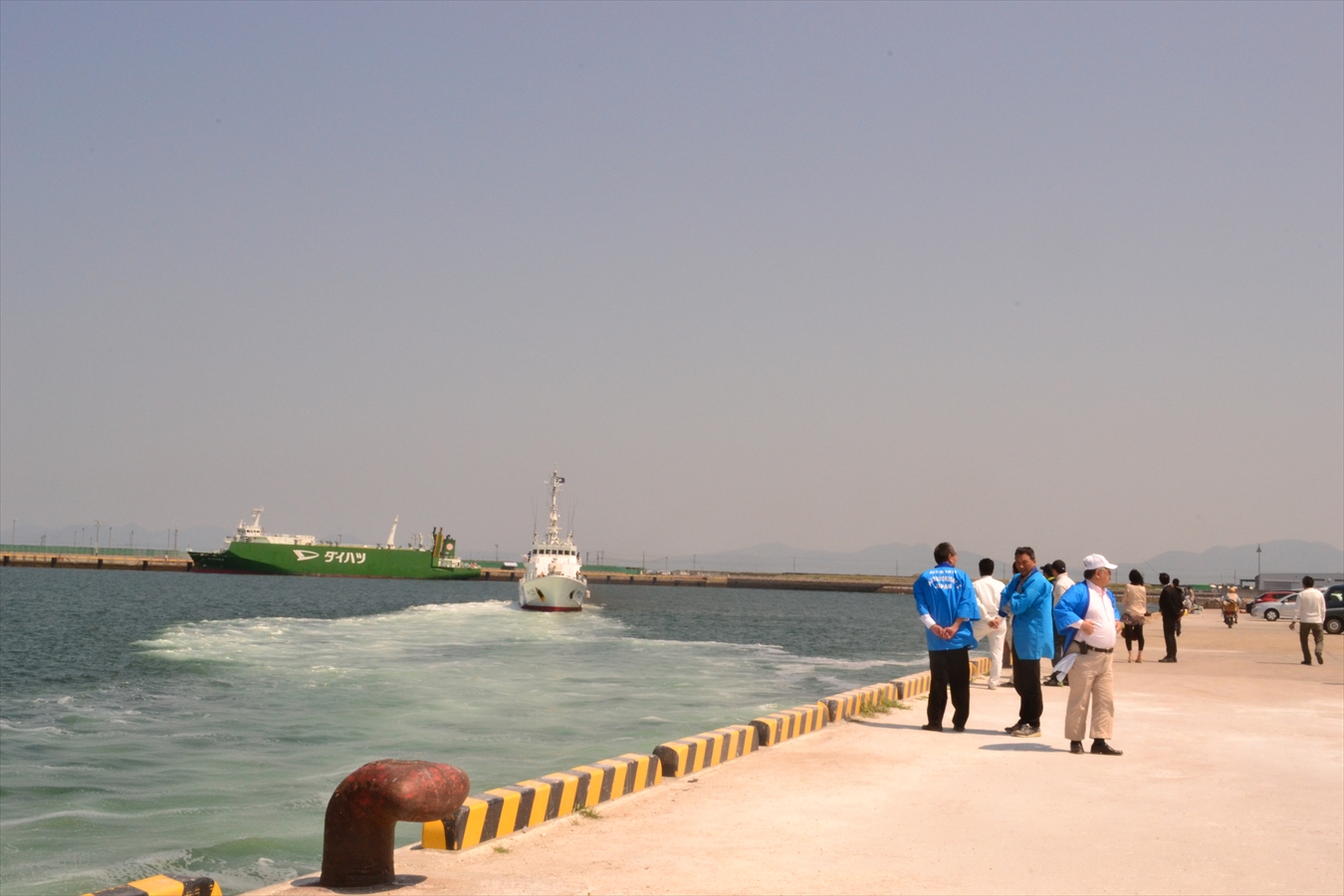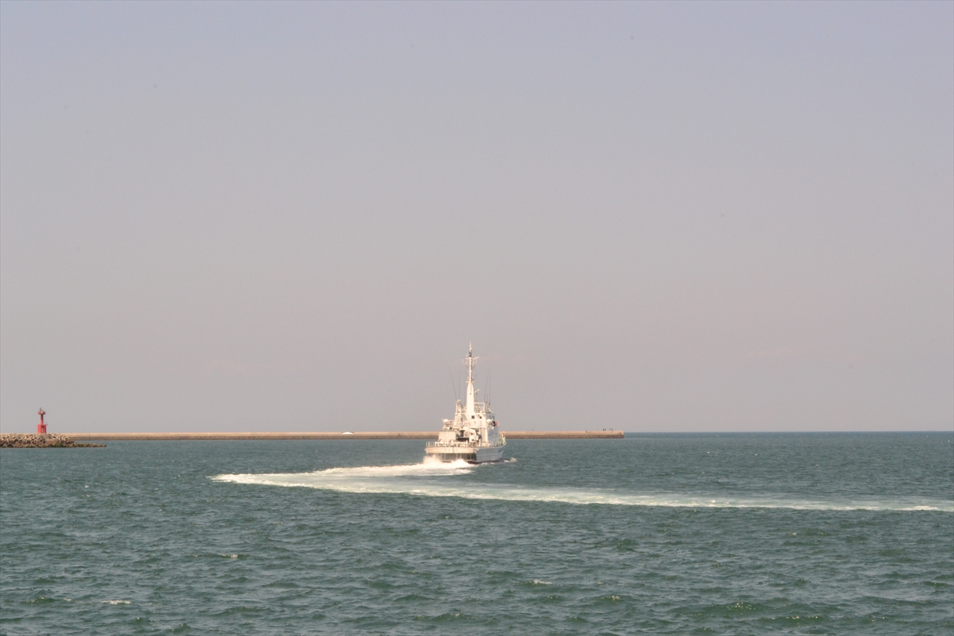 湾内をゆるゆるっとバックして退散。流線な白波がきれいですねー。