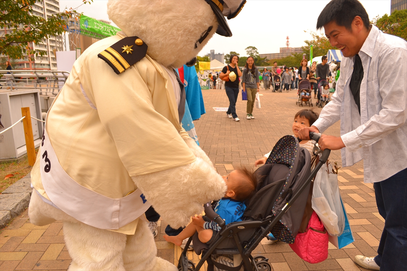 めっちゃ子供たちに大人気のうみまる!ベビーも興味津々です。
