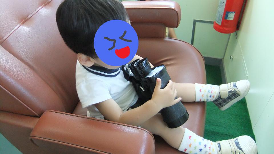 双眼鏡に興味深々な息子